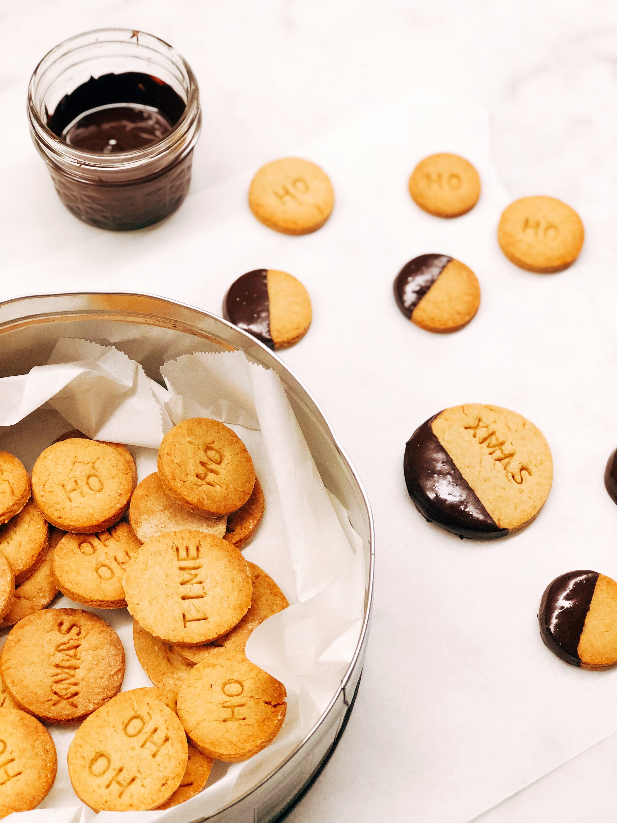 Je kan de koekjes gewoon ‘naturel’ laten of even dippen in chocolade en laten afkoelen.
