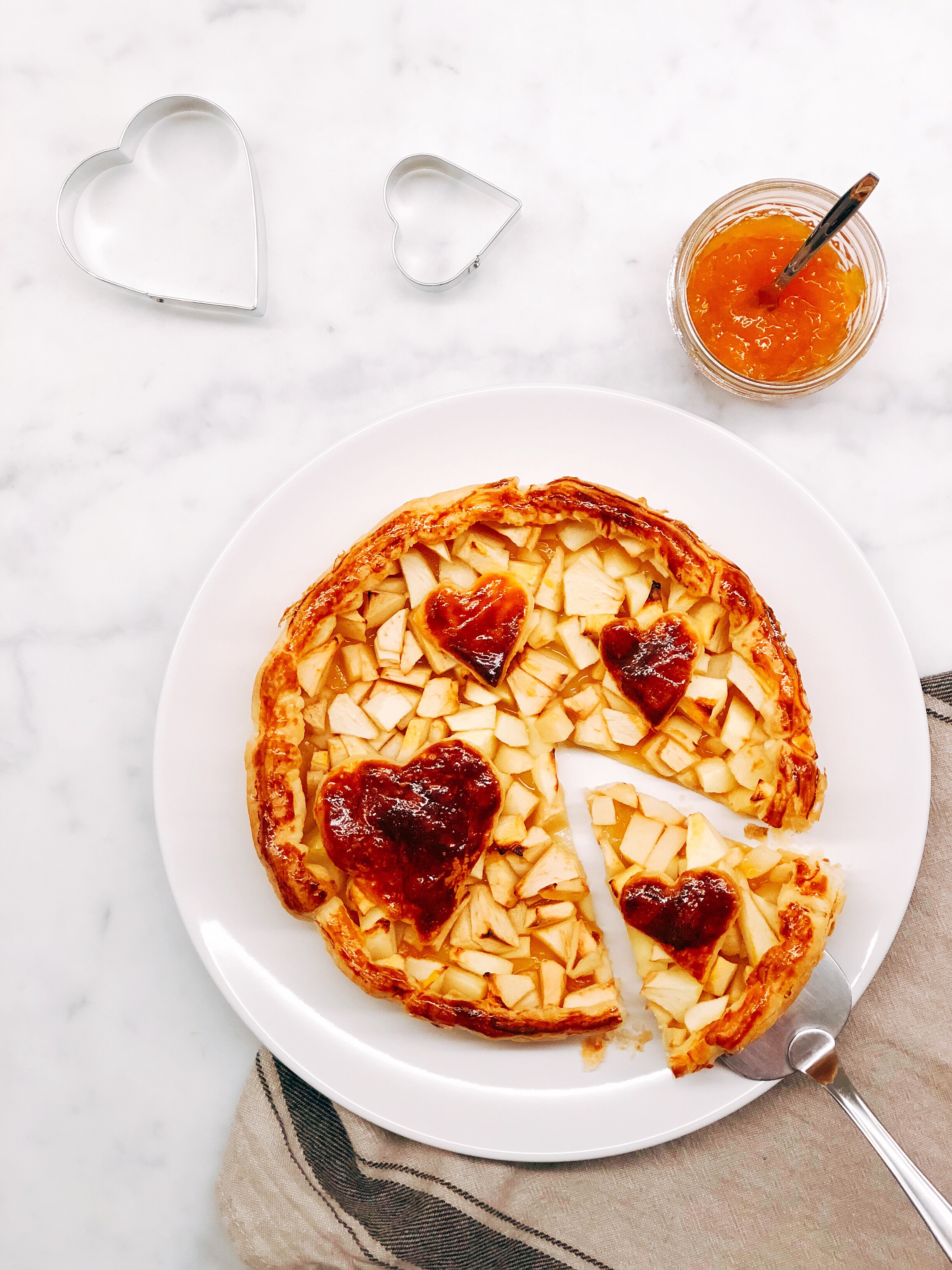 Dit easy to make – appeltaartje bestaat maar uit 3 ingrediënten : appel, abrikozenconfituur en bladerdeeg.