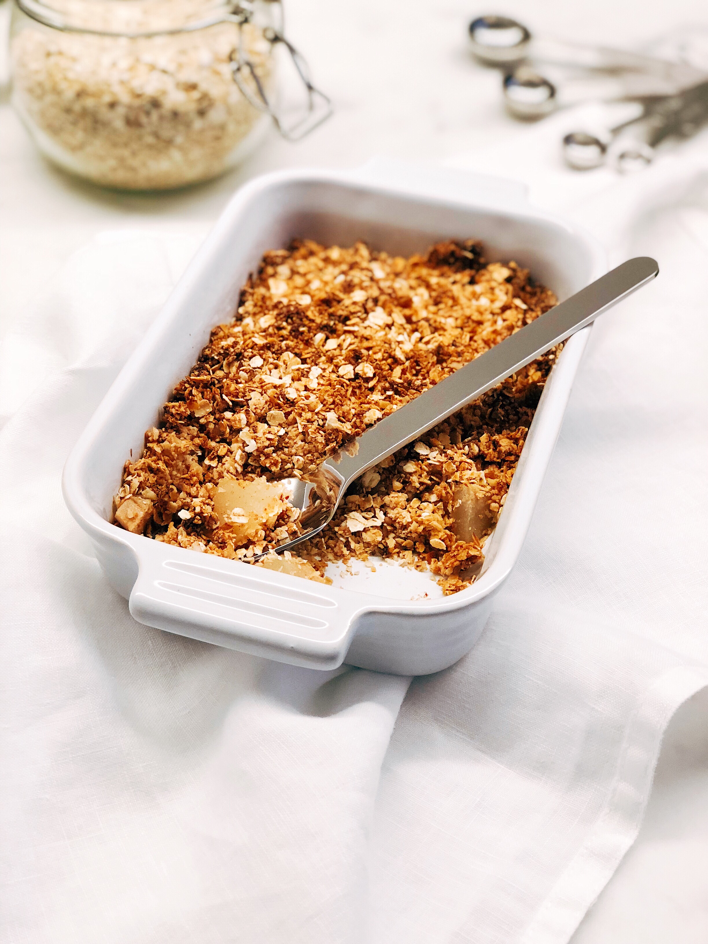 Deze crumble is heel lekker met een paar lepels yoghurt.