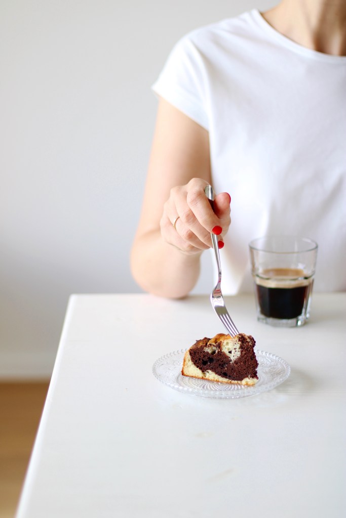 Peace of cake, deze cake 🙂 En zo een mooi gemarmerd effect als je hem doorsnijd, love it!