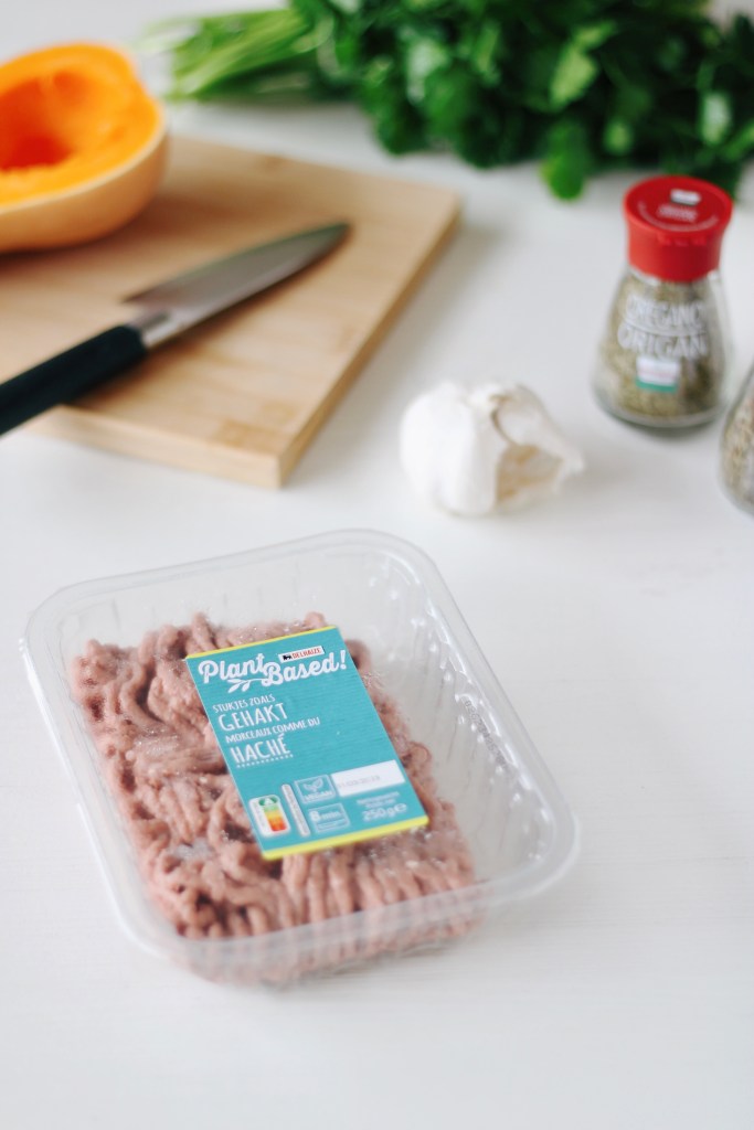 Karolien maakt de pasta met balletjes van vegetarisch gehakt, maar voor wie hier geen fan van is, kan het natuurlijk ook met gewoon gemengd gehakt of kippengehakt. Ik vond persoonlijk dat het meegeleverde vegetarisch gehakt vrij zout smaakt en voor een vegetarische versie ik zou eerder kiezen voor het gehakt van ‘De Vegetarische Slager‘