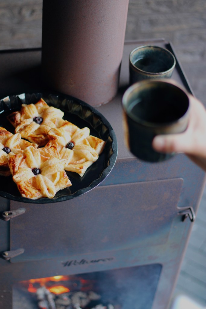 - ga met de appelringen door de kaneelsuiker en leg ze op de bladerdeegjes